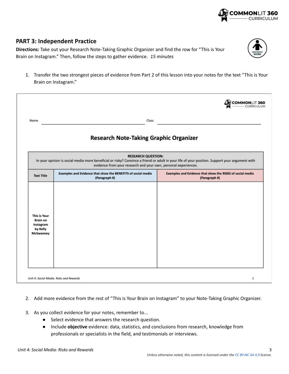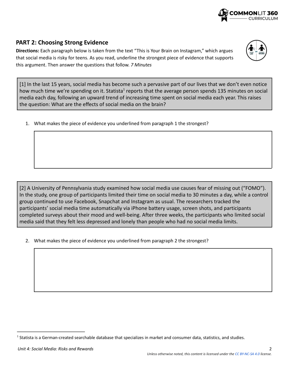 1) Inicie sesión en CommonLit 2) Abre el artículo "Este es tu cerebro en Instagram".