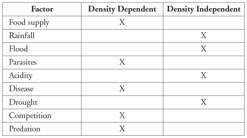 pairing of a density-independent factor and density-dependent factor that might occur.