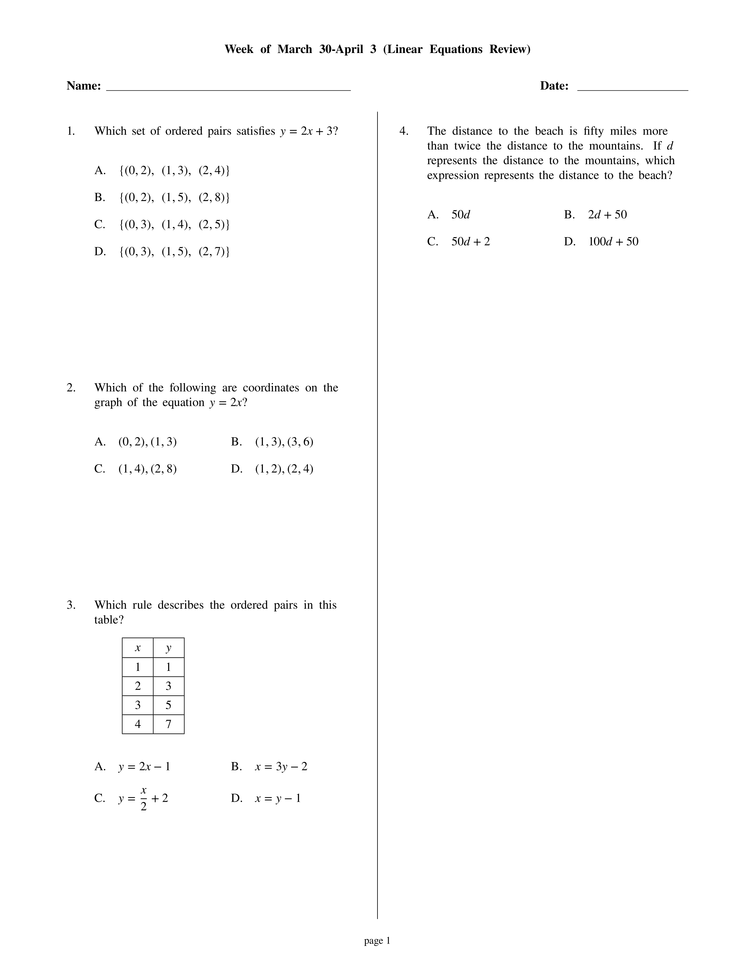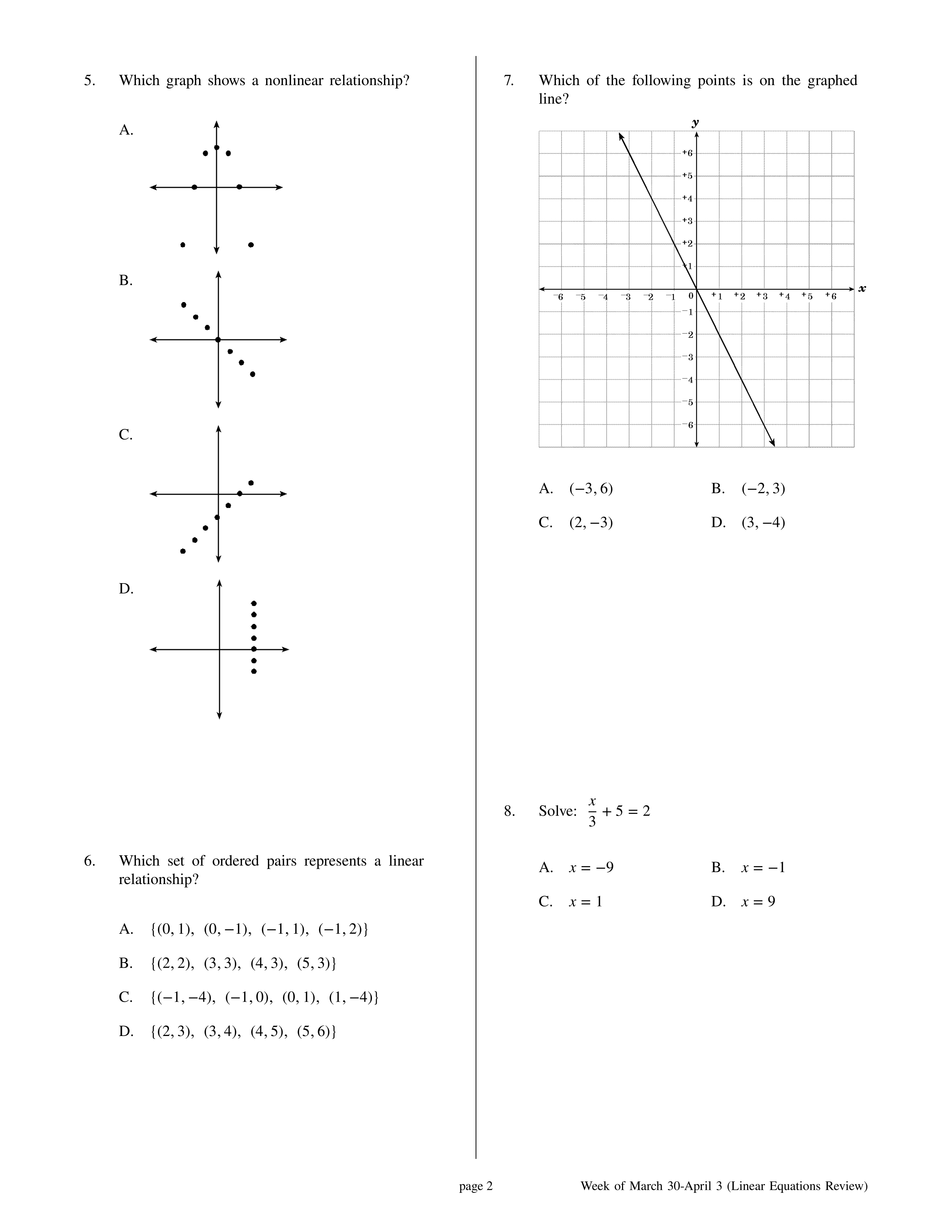 April 6 - 10 (Linear Equations Review)