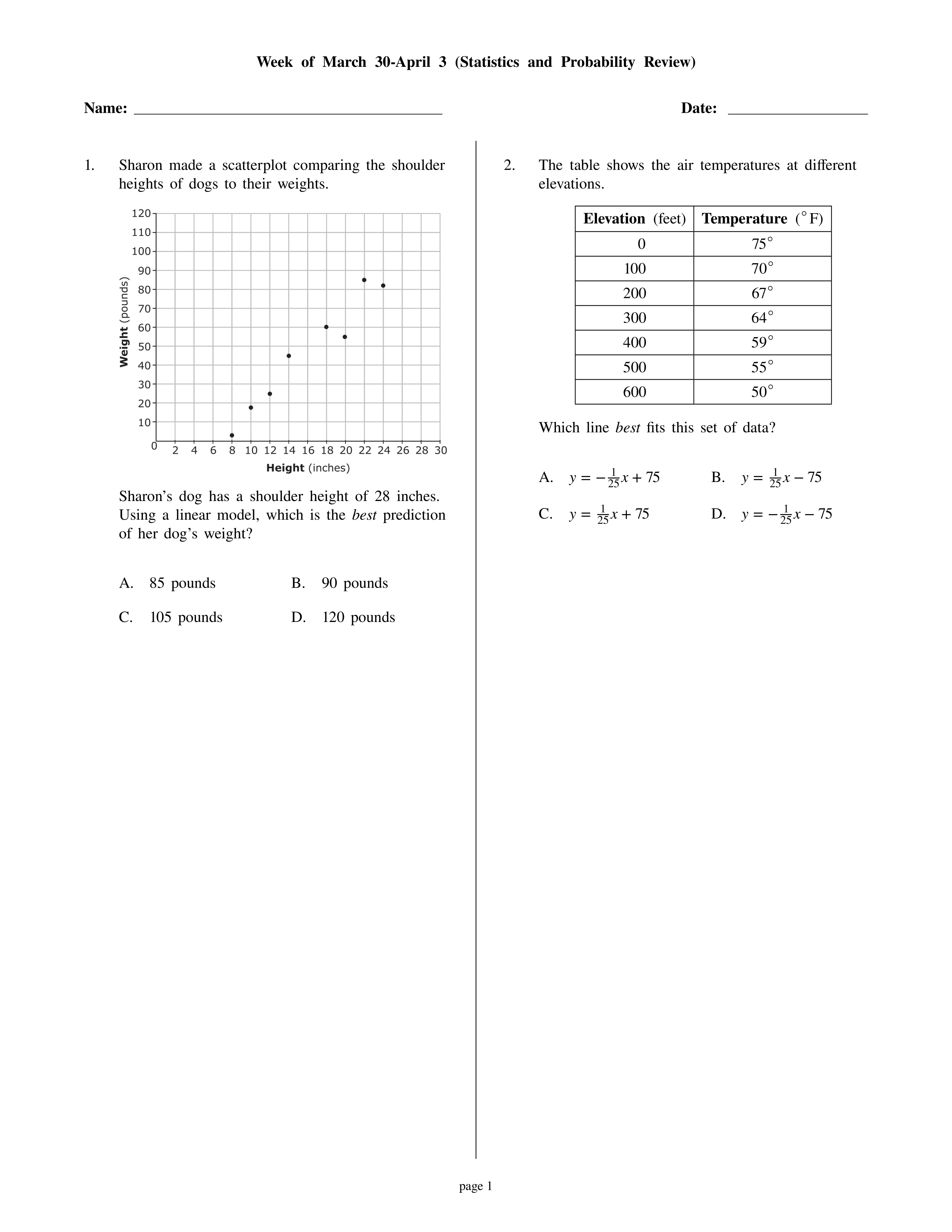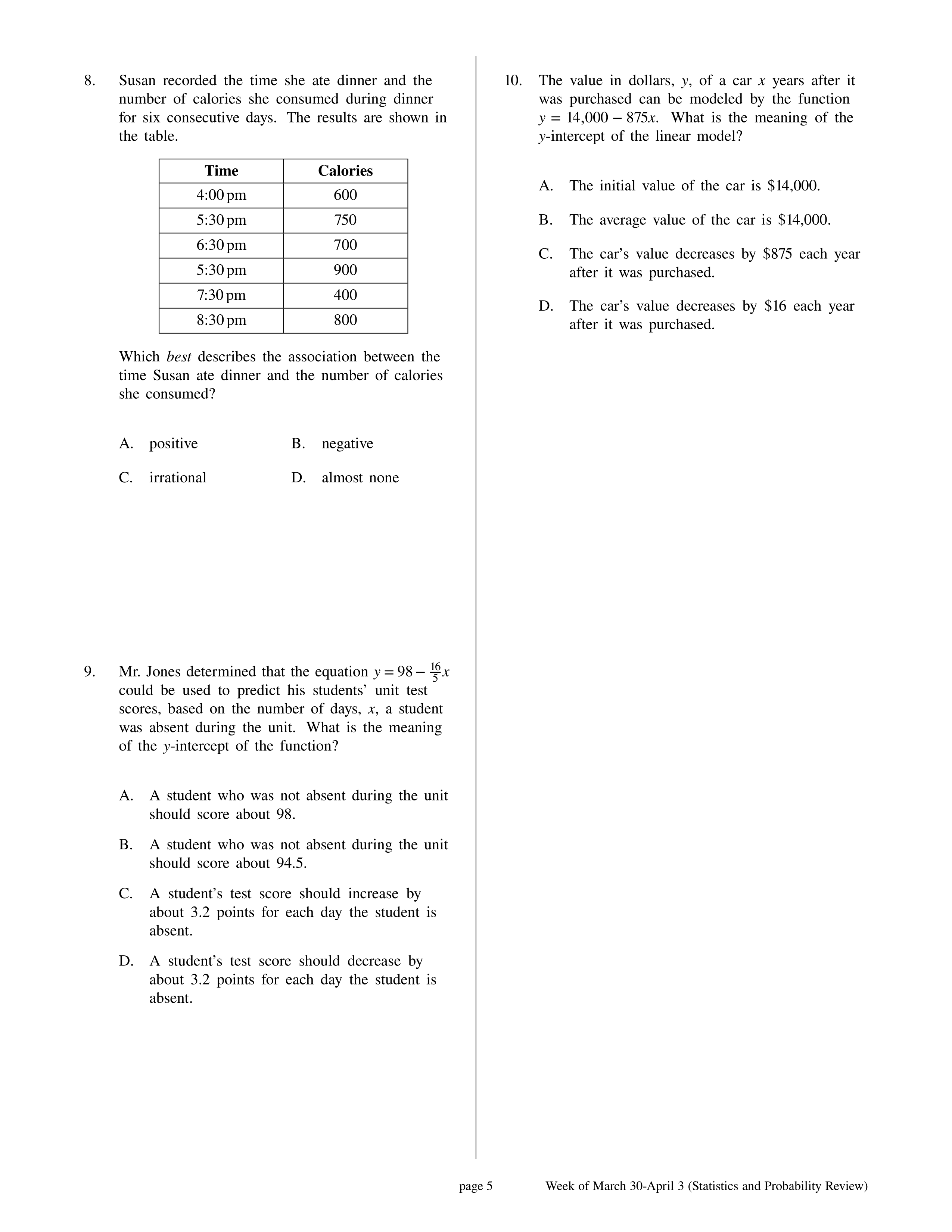 April 6 - 10 (Statistics and Probability Review)