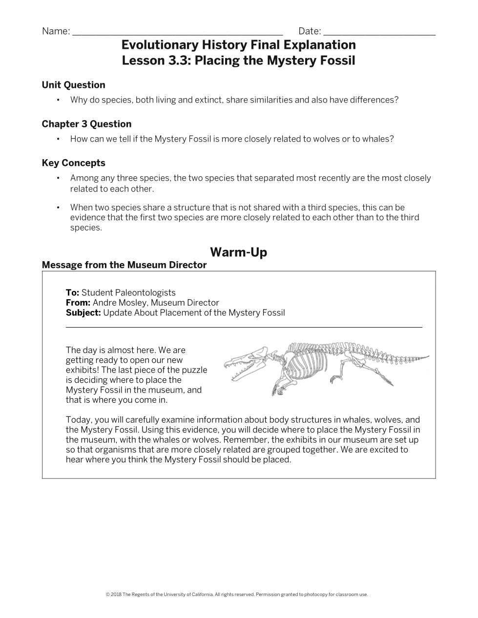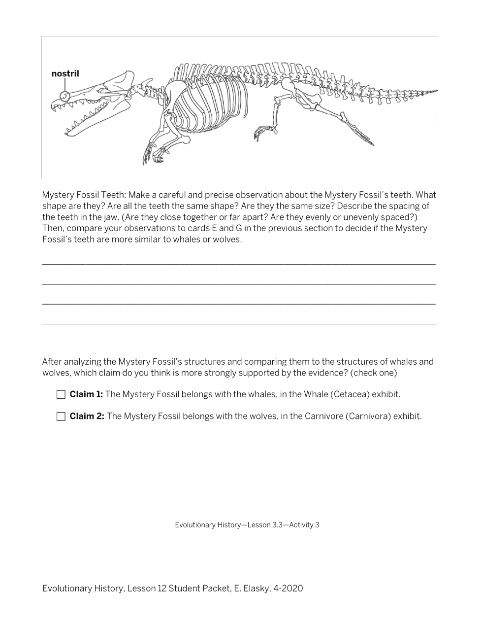 After analyzing the Mystery Fossil's structure and comparing them to the structures of whales and wolves, which claim do you think is more stronlgy supported by the evidence?