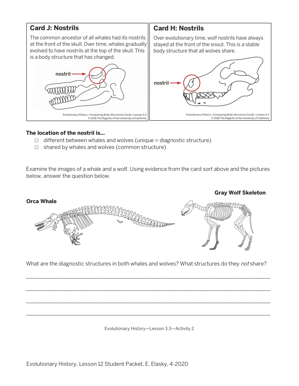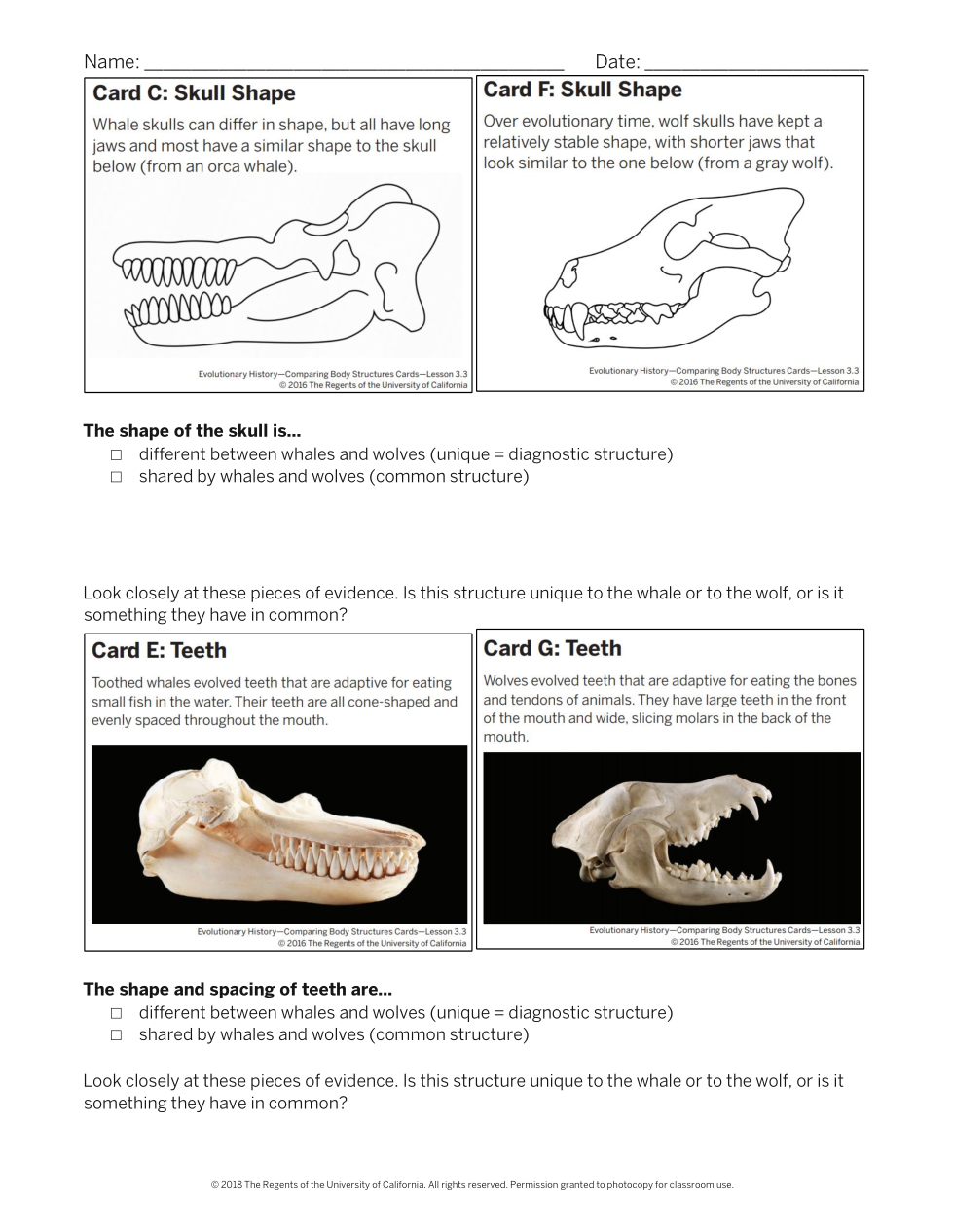 Examine the skull shape (cards C and F). State ONE thing you notice about the shape of the skulls.