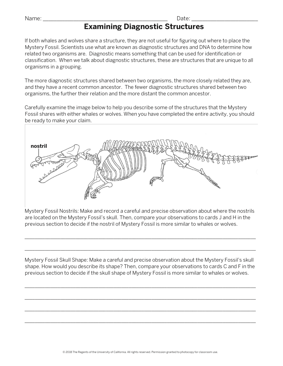Scientists determine how closely related two animals are by comparing diagnostic structures and