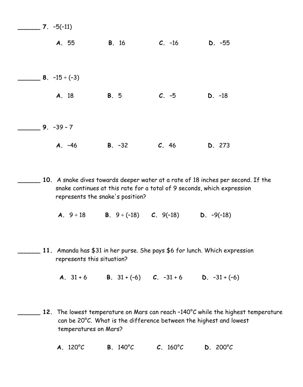 A snake dives towards deeper water at a rate of 18 inches per second. If the snake continues at this rate for a total of 9 seconds, which expression represents the snake's position?