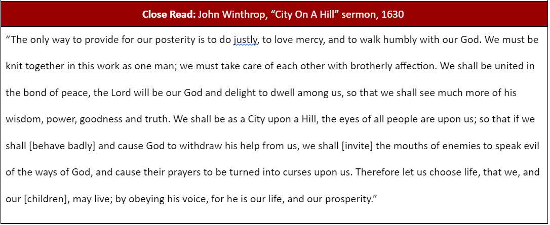 What is the main idea of this speech? What do you think Winthrop means when he says, “We shall be as a City Upon a Hill?”