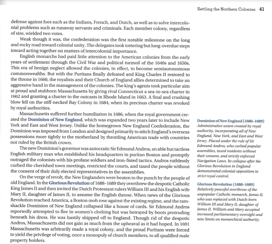 APUSH Chapter 3: Settling the Northern Colonies (1619-1700)