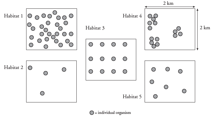Describe the arrangements of the dots in habitat 3