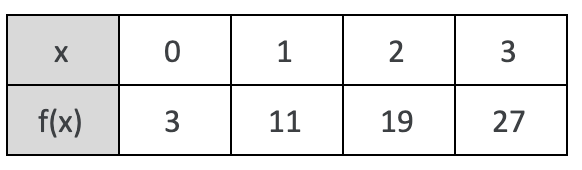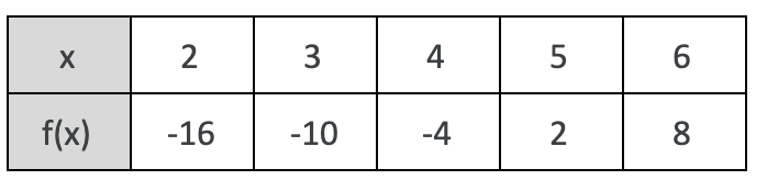 Write a function from the given table. f(x) = mx + b