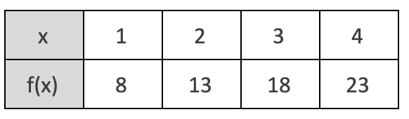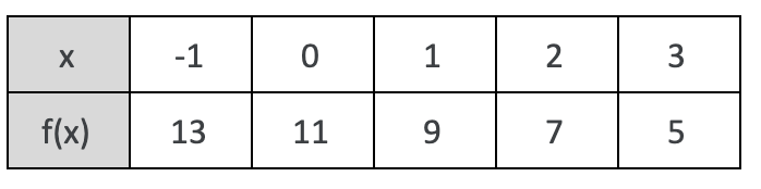Write a linear function from the table.