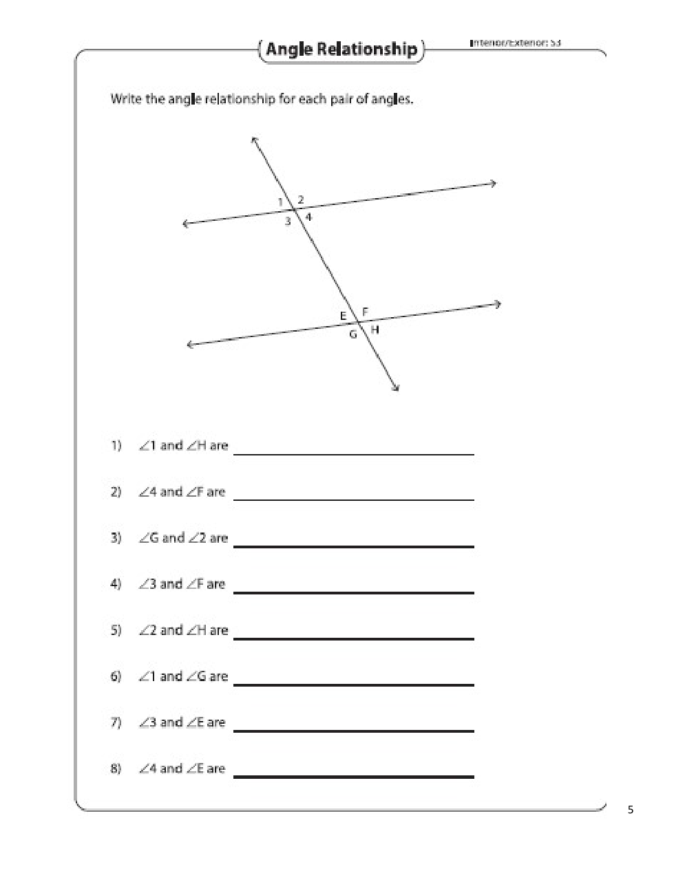 2.1 Angle Pairs with Parallel lines cut by a transversal Intro