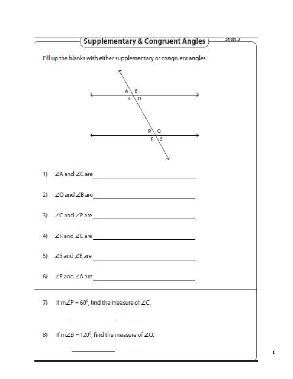 2. Identify special angle relationship (congruent:equal, supplementary:add to 180)