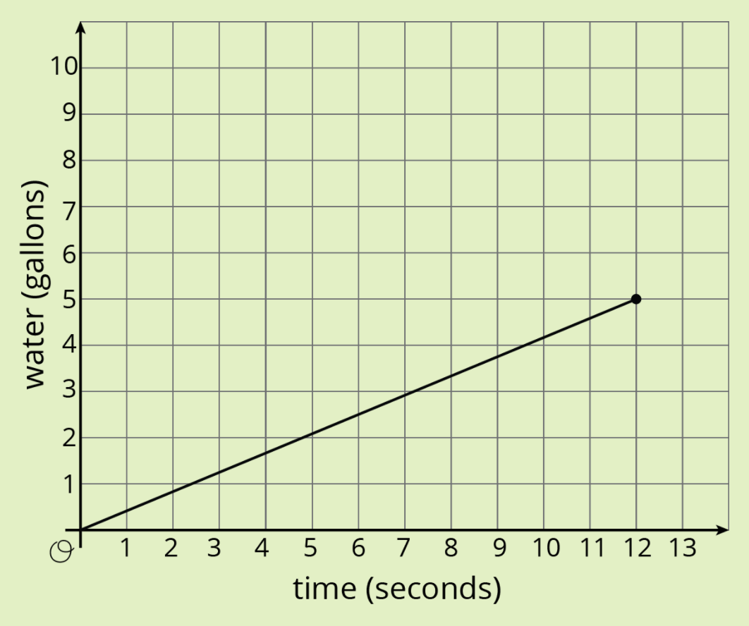 Water runs from a hose into a bucket at a steady rate. The amount of water in the bucket for the time it is being filled is shown in the graph.