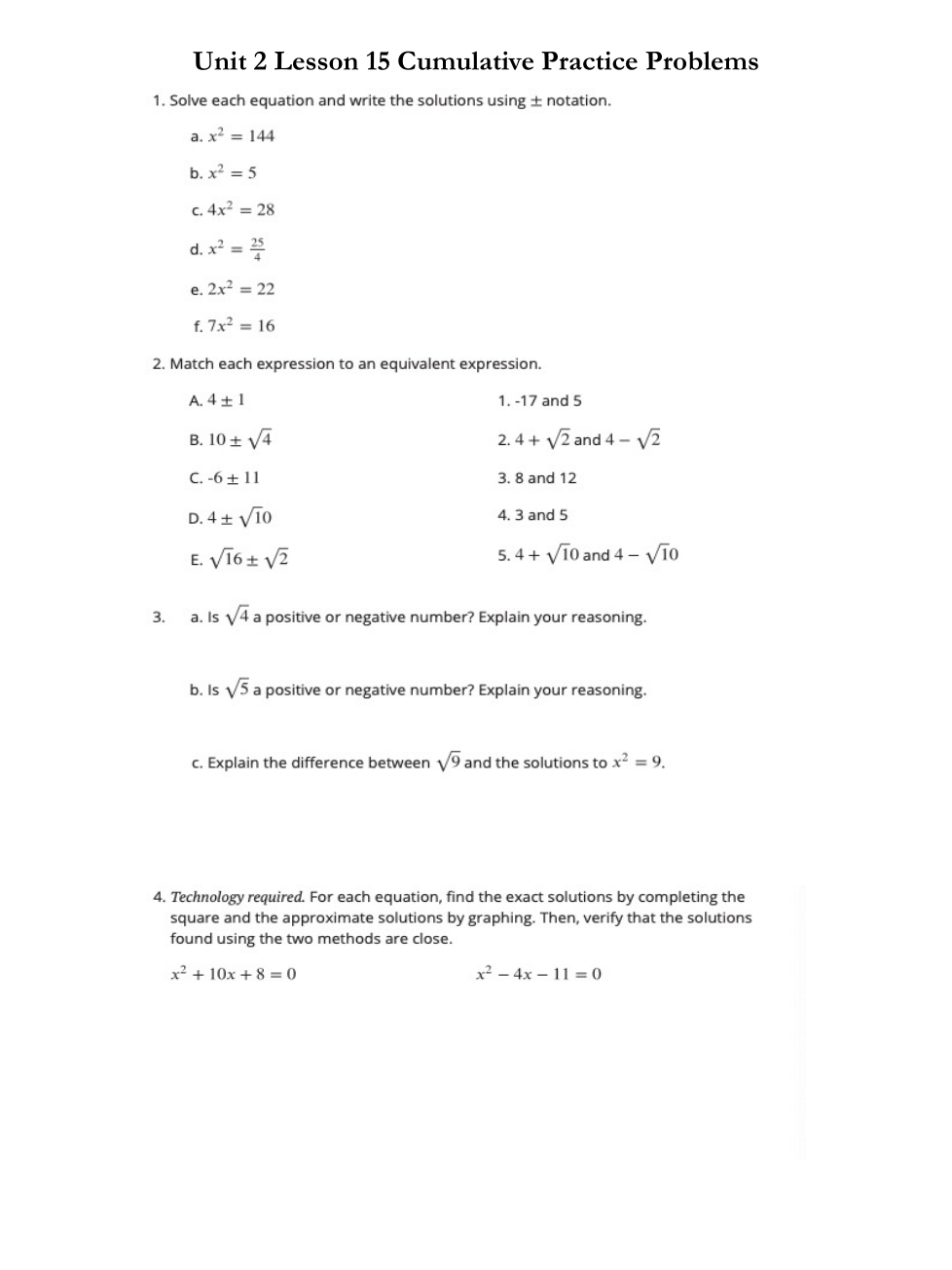 What is the exact solution (using +/- notation) to the equation x2 - 4x - 11 = 0?
