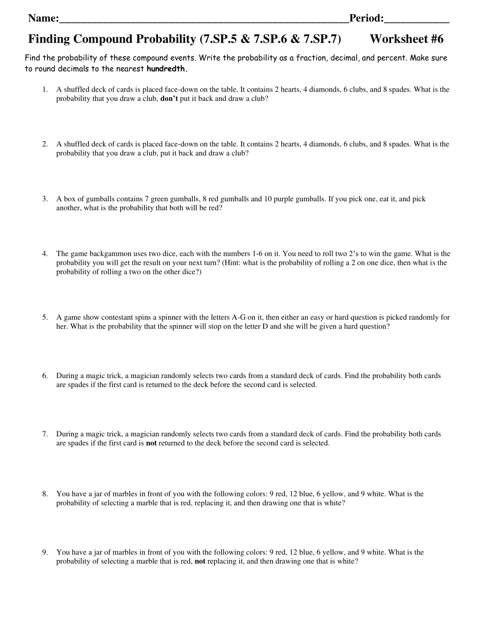 7LRIS Honors WS #6 - Pink Finding Compound Probability