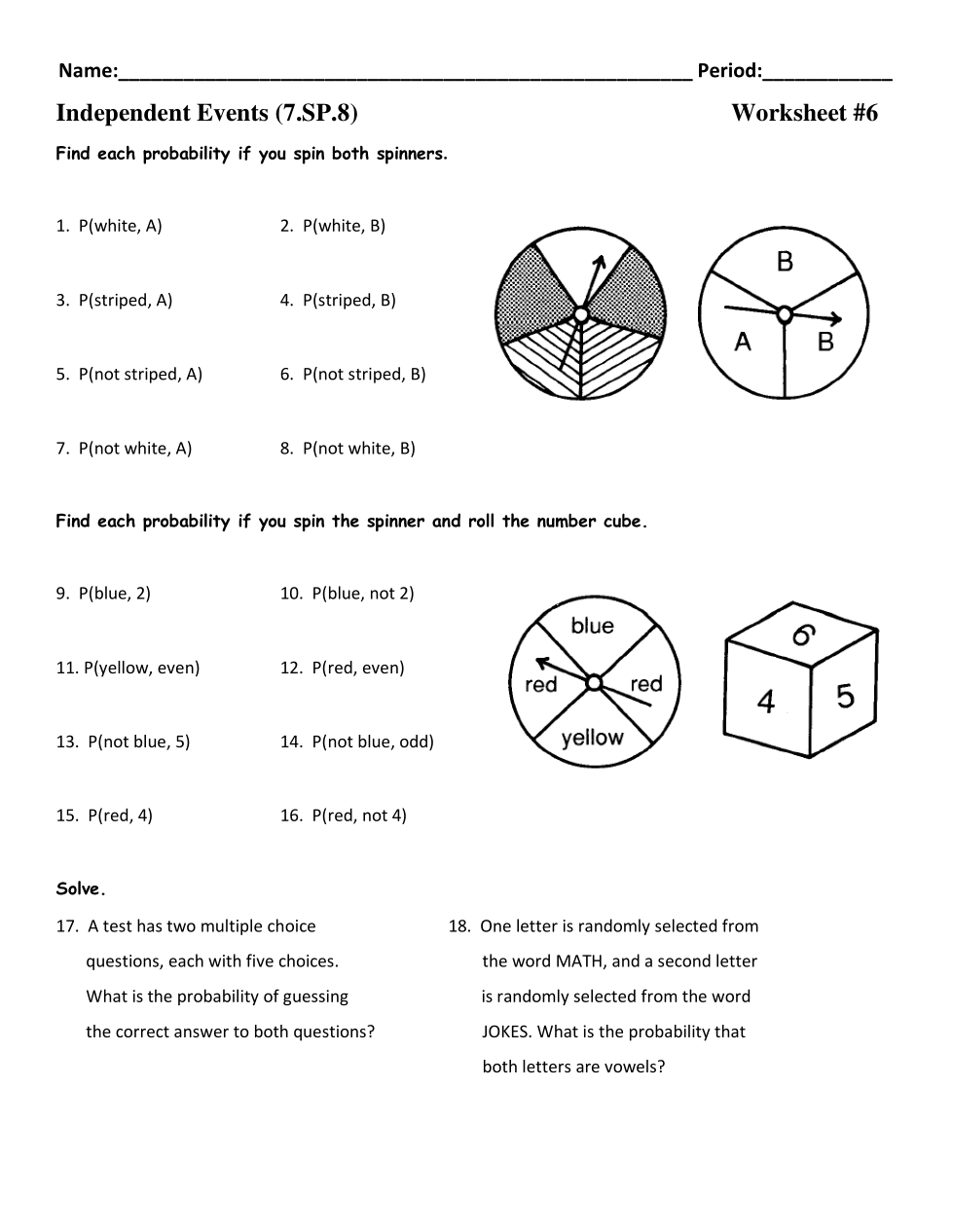 FInd each probability if you spin the spinner and roll the number cube.