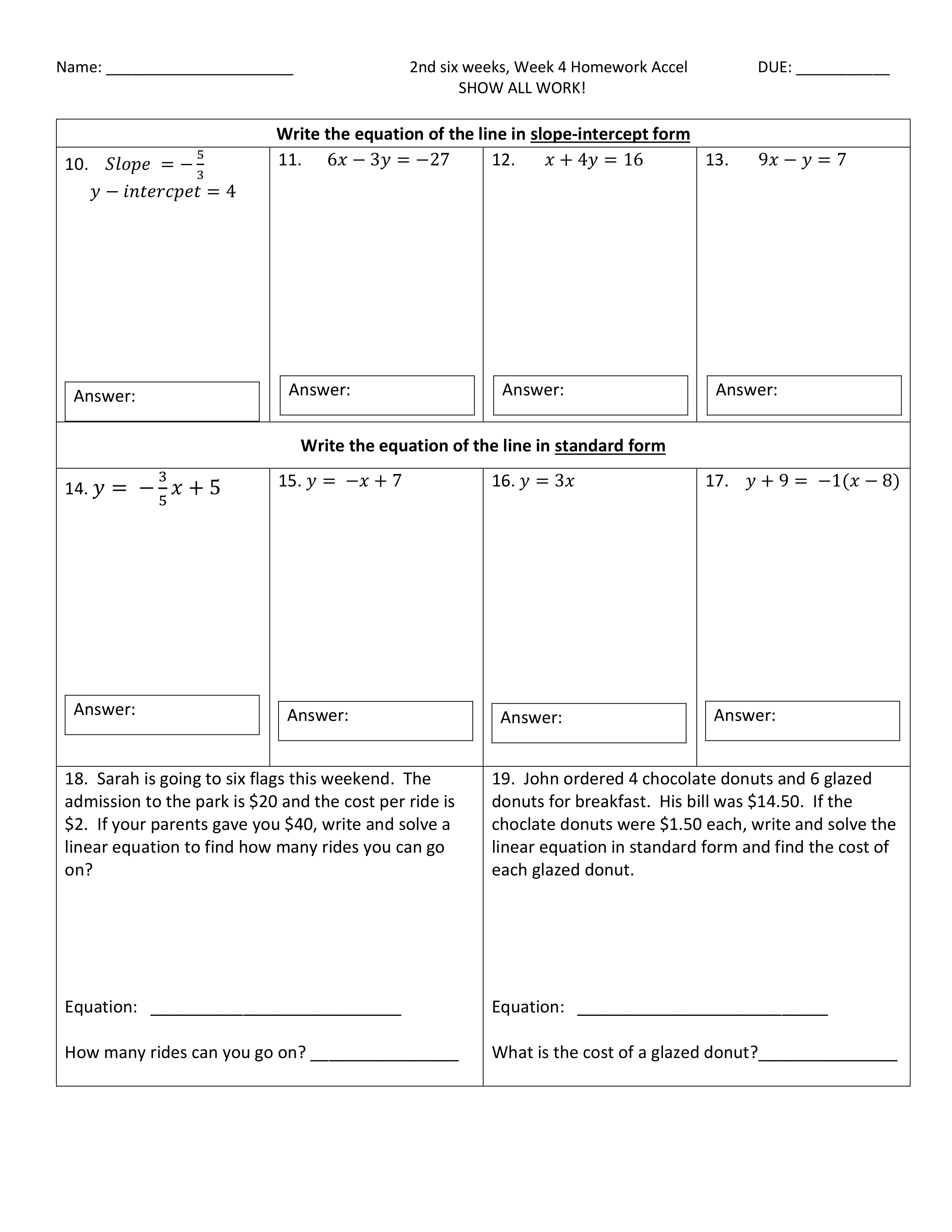 Type your equation in Standard form. (Ax+By=C)