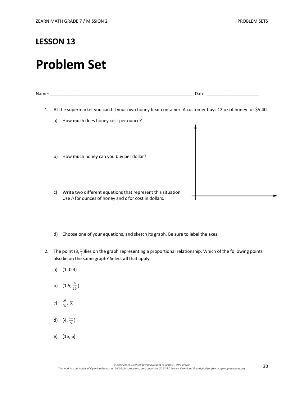 1. At the supermarket you can fill your own honey bear container. A customer buys 12 oz of honey for $5.40.