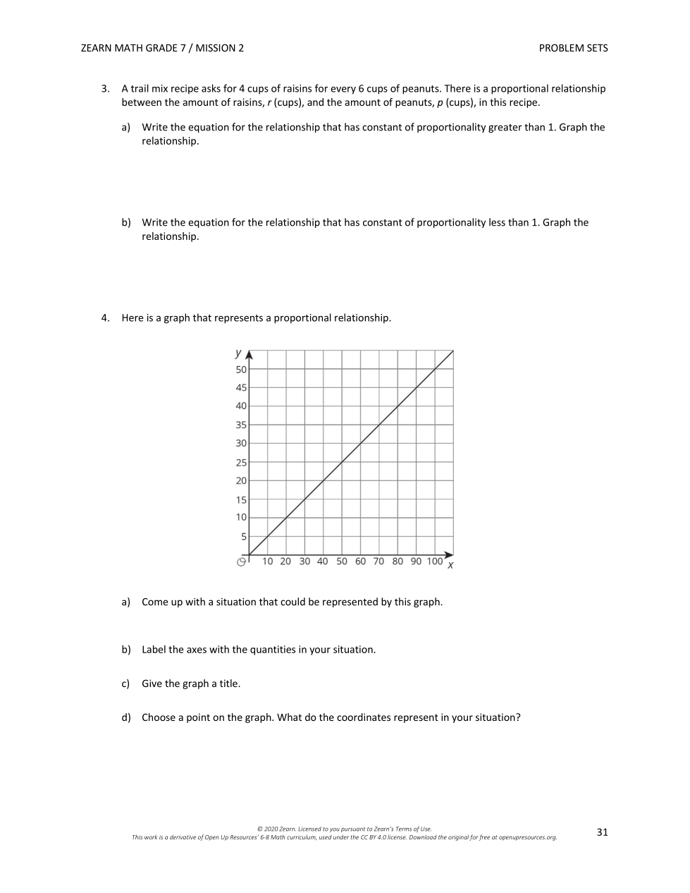 3. A trail mix recipe asks for 4 cups of raisins for every 6 cups of peanuts. There is a proportional relationship between the amount of raisins, r (cups),and the amount of peanuts p (cups), in this recipe.