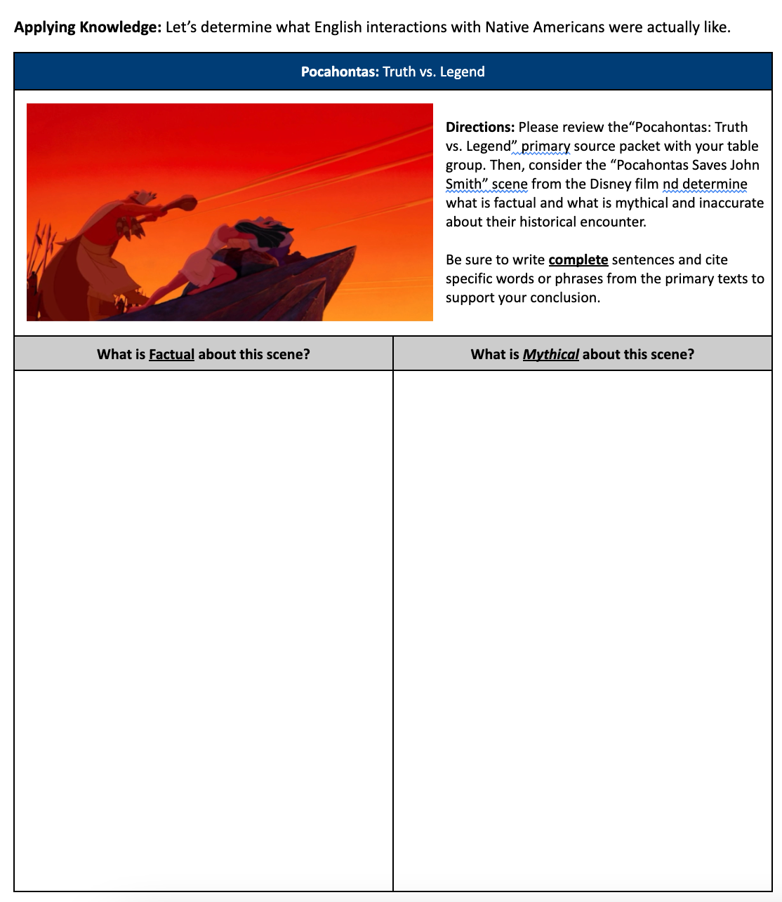 Content Objective: I will be able to explore historical misconceptions on the legend of Pocahontas.