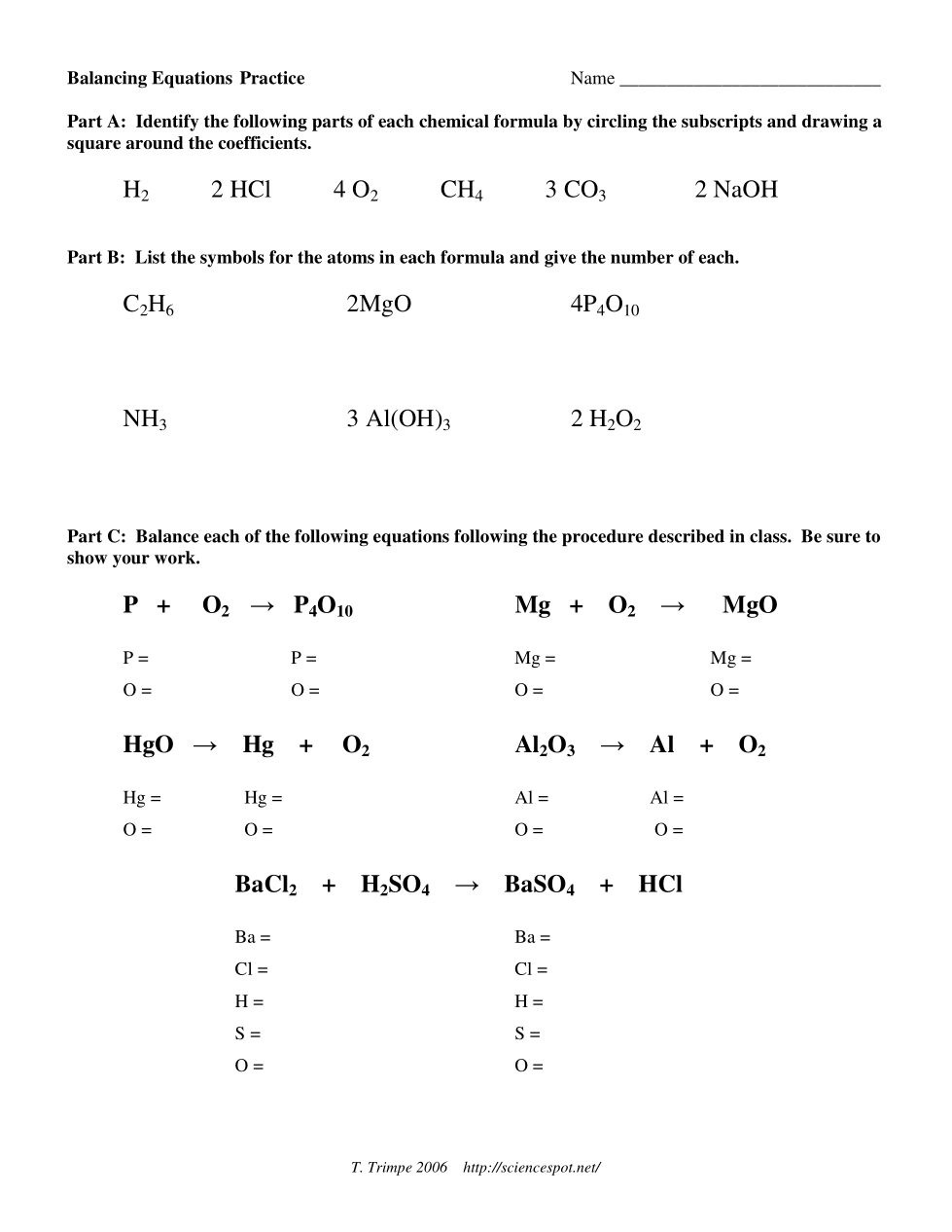 Part A: Identify the parts of each chemical formula by circling the subscripts and drawing a square around the coefficients