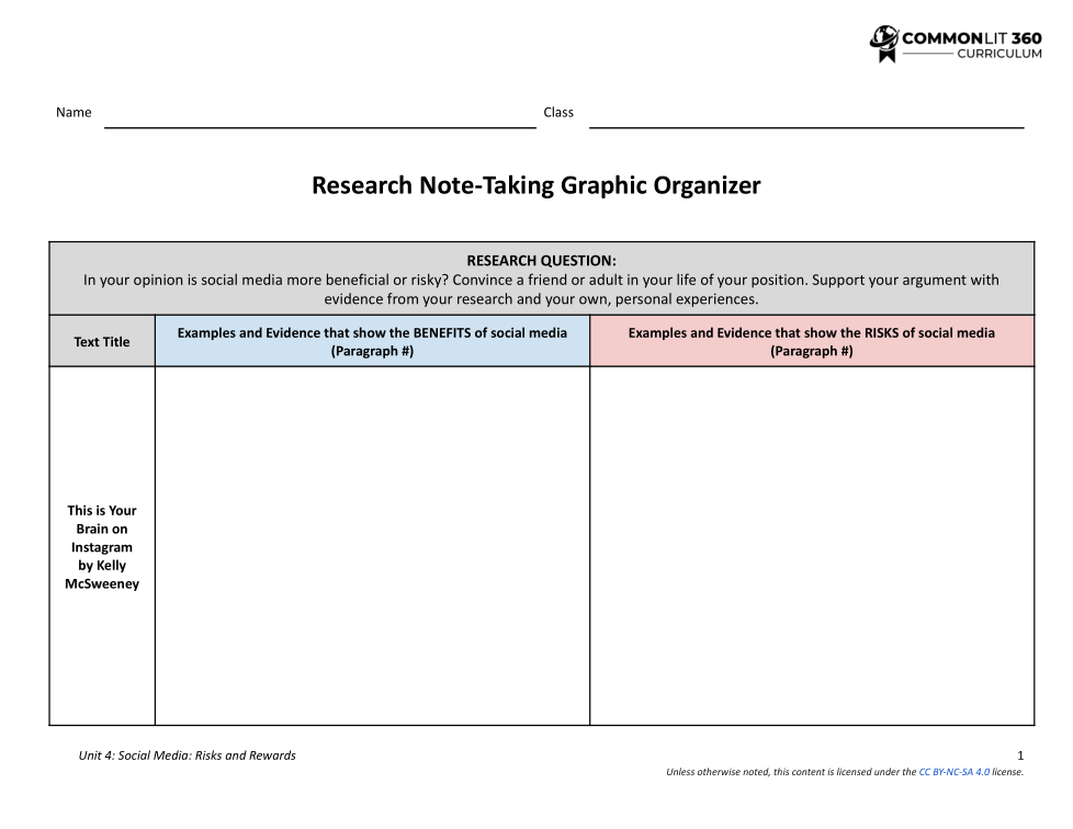 10.11 - U4 - Graphic Organizer - Social Media Risks & Rewards