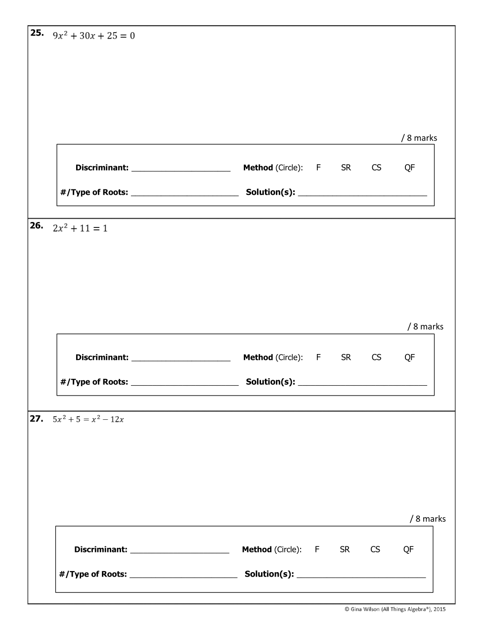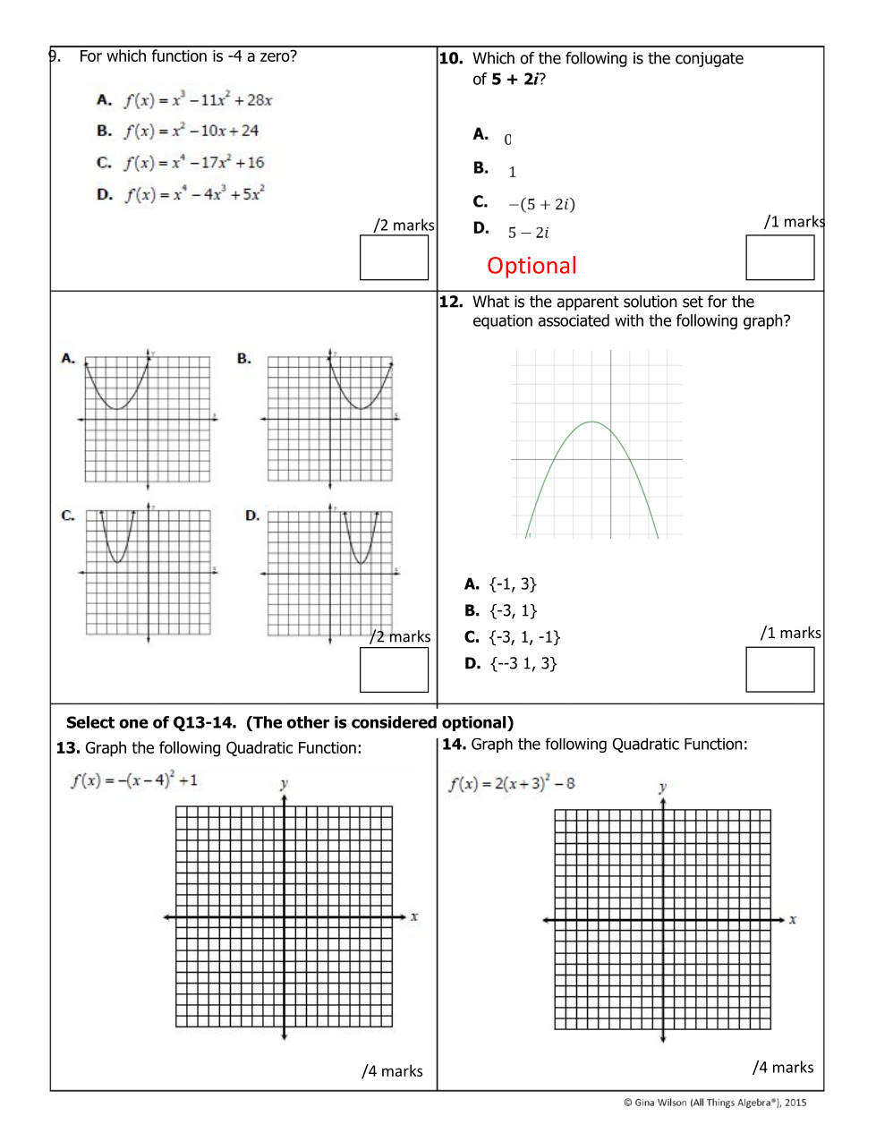 Unit 2 Test: Quadratic Equations & Complex Solutions