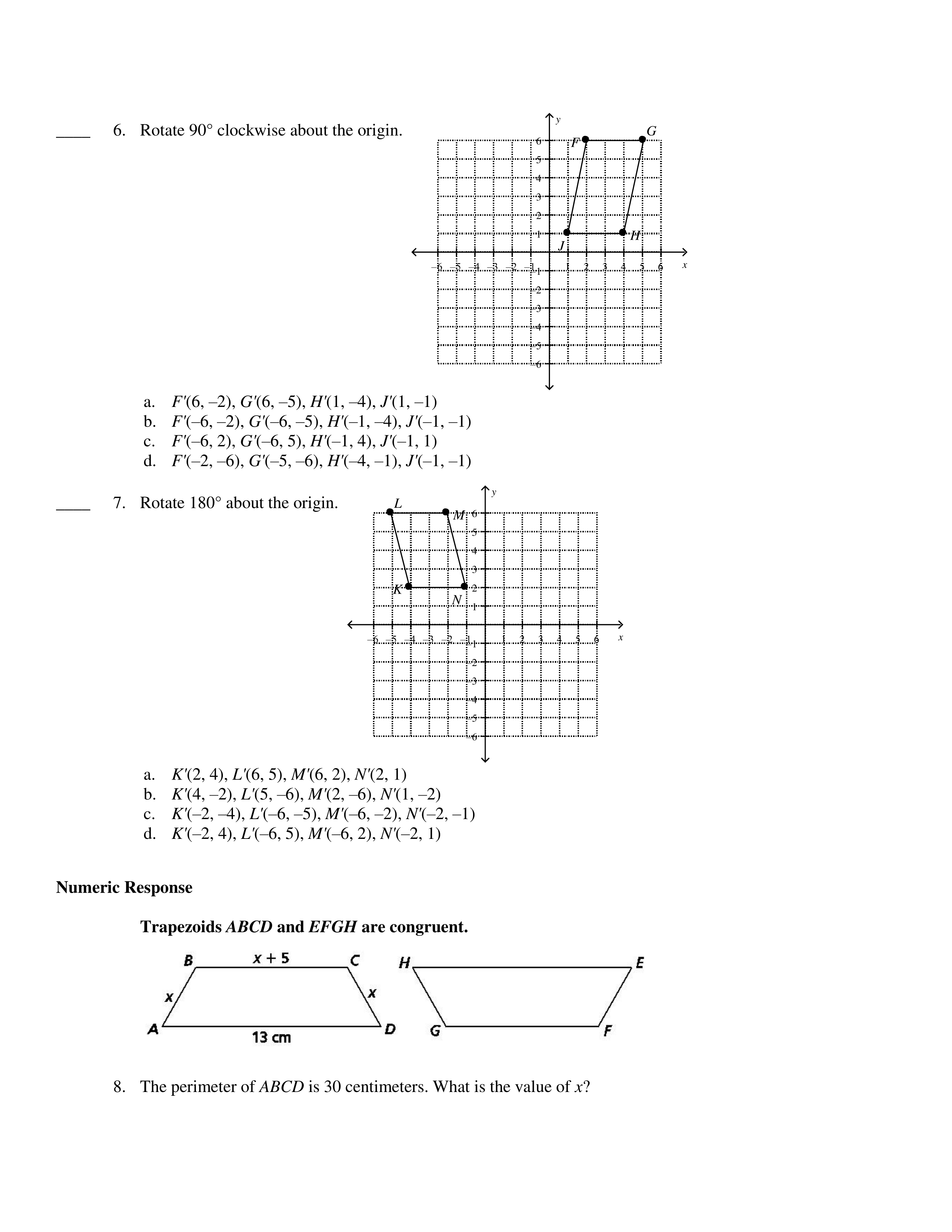 c. K'(-2, -4), L'(-6, -5), M'(-6, -2), N'(-2, -1)