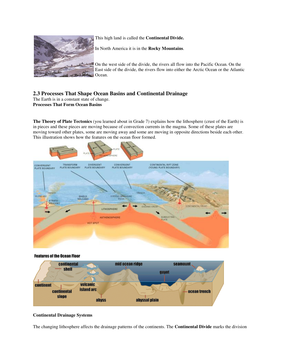 Major North American watersheds are determined by the Continental Divide. This is where you find the highest land and is located in the ...