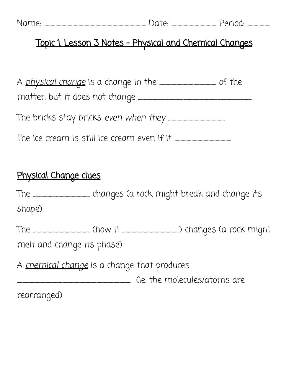 What is a clue that a physical change has occurred?