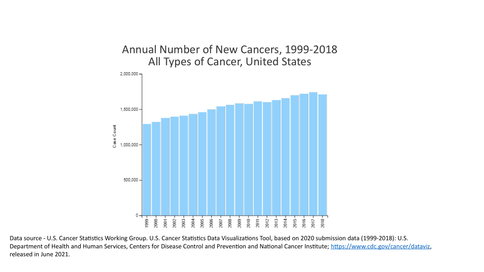 The Annual Number of New Cancers between 1999-2018 have decreased in the United States.