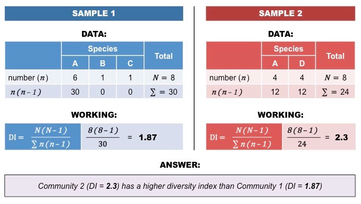 You need to compare species richness and species evenness to get a true picture of species diversity in an area.