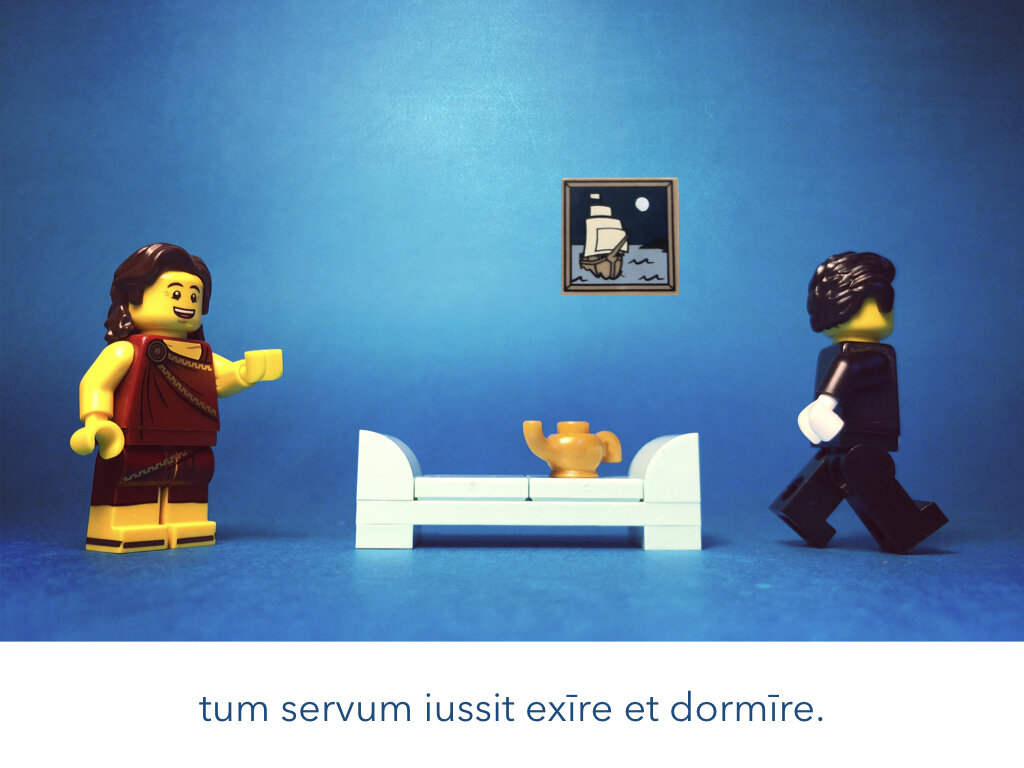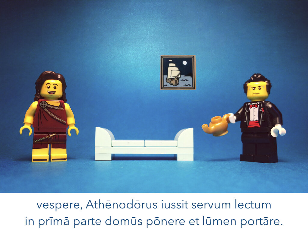 Vespere, Athēnodōrus iussit servum lectum in prīmā parte domūs pōnere et lūmen portāre.