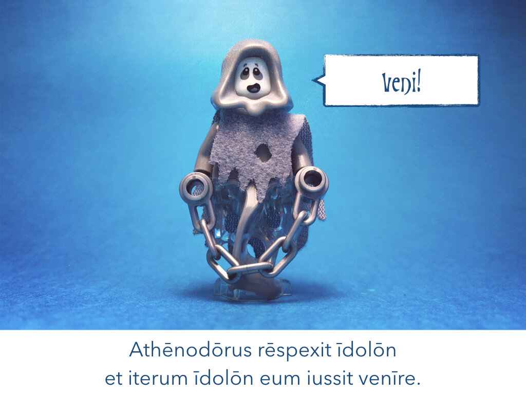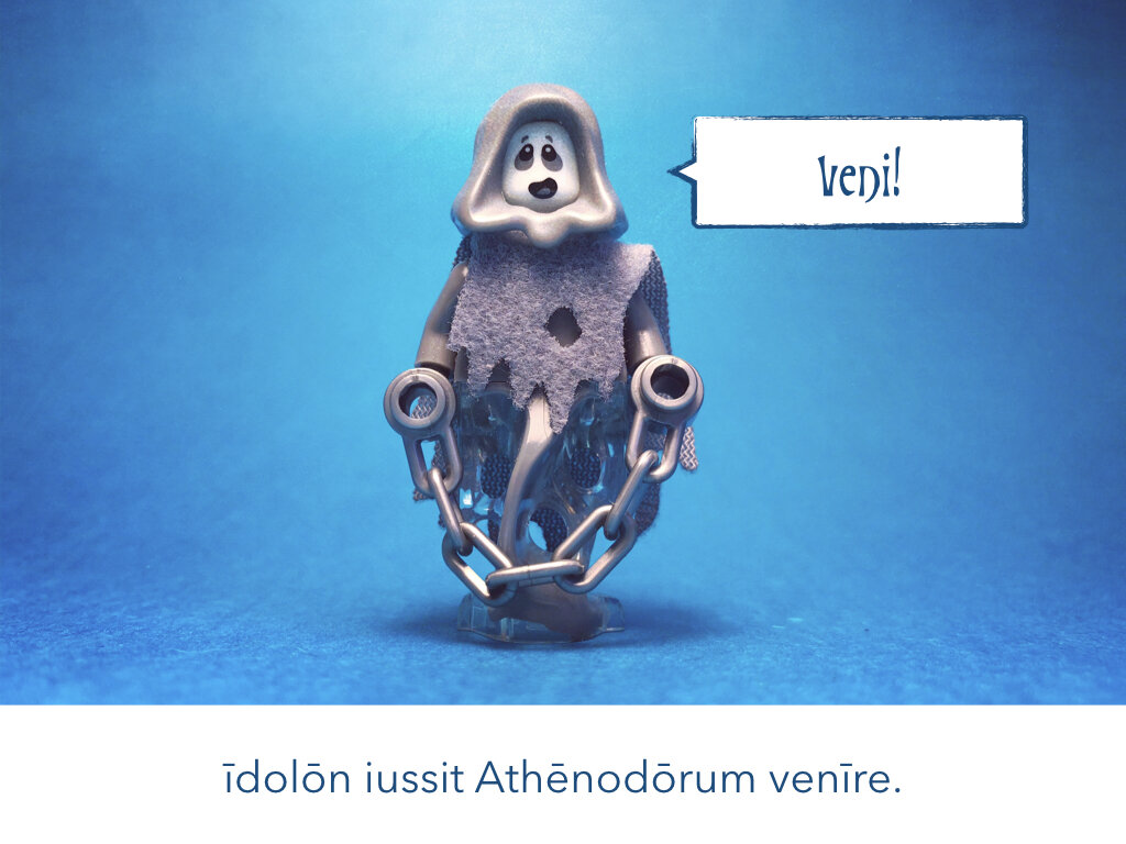 Athēnodōrus rēspexit īdolōn et iterum īdolōn eum iussit venīre.