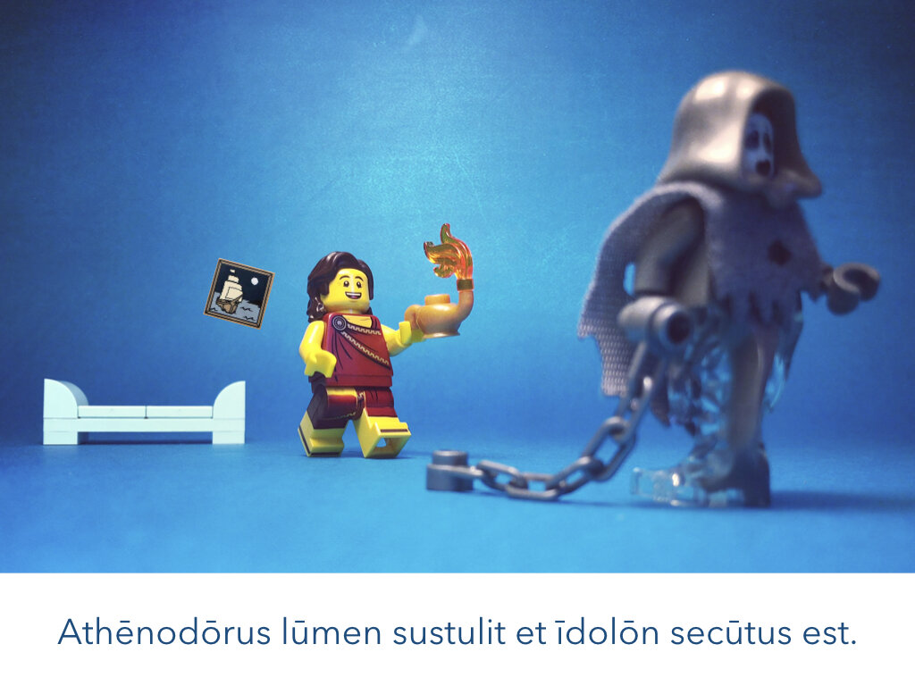 Athēnodōrus lūmen sustulit et īdolōn secūtus est.