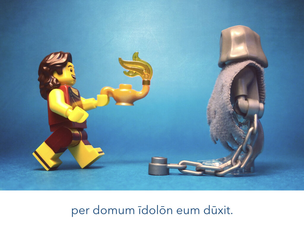 Īdolōn eum dūxit in āream domūs, tum ēvānuit.