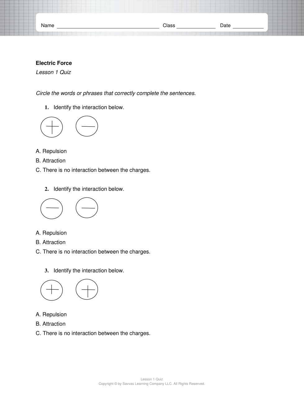 Lesson 1 Quiz - Electric Force