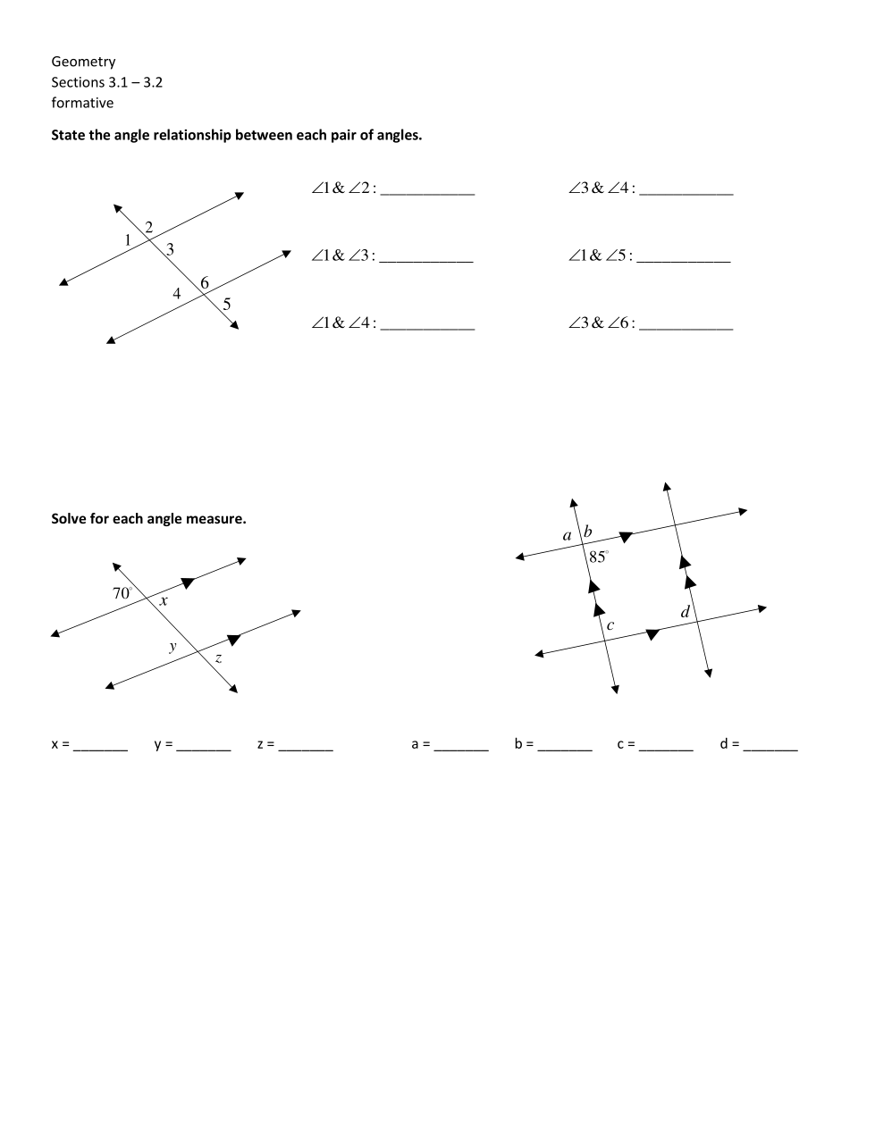 Geometry Sections 3.1 - 3.2 Short Cycle Quiz G.PL.1