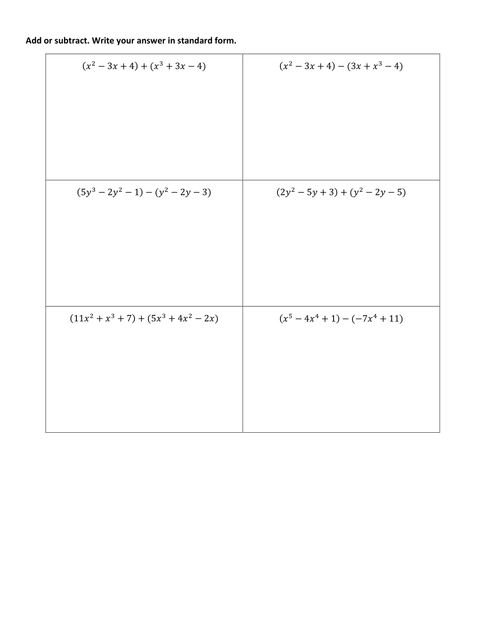 What is the expression 4x + 2x2 -7 + x3 in standard form?