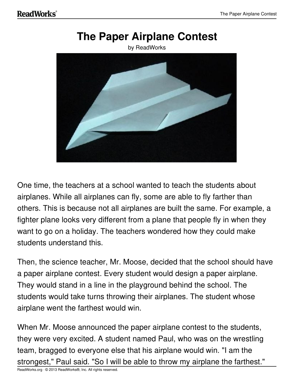 Does the paper airplane contest teach students anything about how real airplanes fly? Explain why or why not, using evidence from the story.