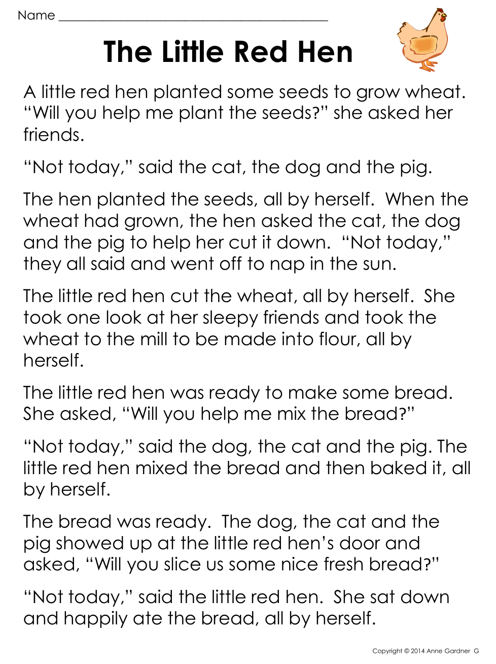 The hen had to do all the work herself.