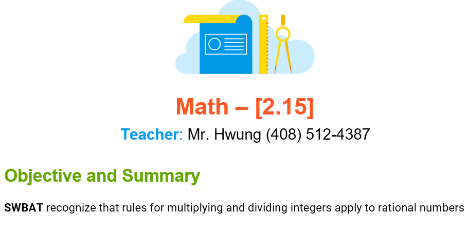 1) Work on the new starred recommended skills on IXL (multiplying/dividing fractions and decimals)