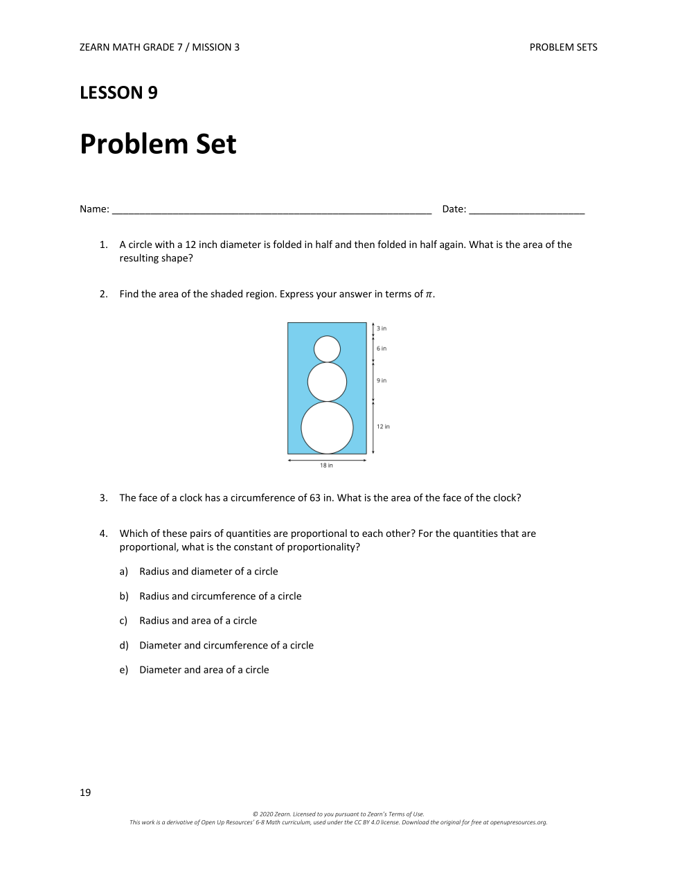 1. A circle with a 12 inch diameter is folded in half and then folded in half again. What is the area of the resulting shape?