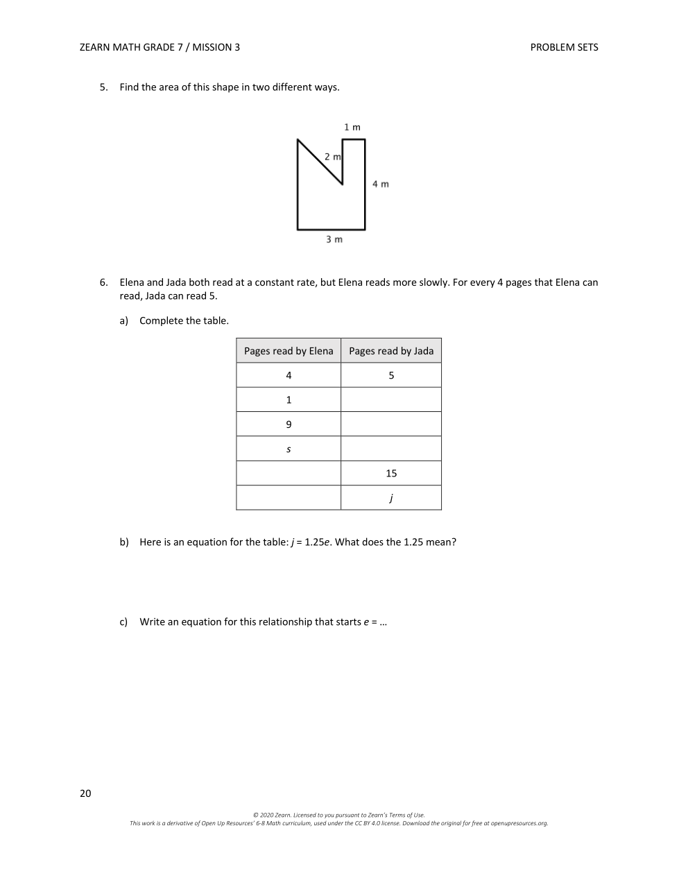 6. Elena and Jada both read at a constant rate, but Elena read more slowly. For every 4 pages that Elena can read, Jada can read 5. a) Complete the table.