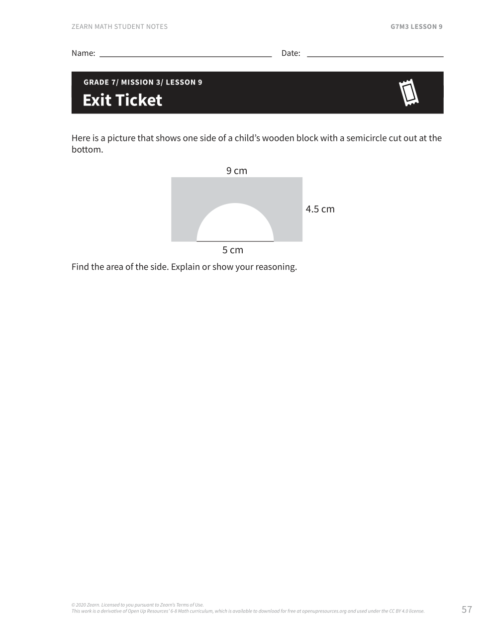 EXIT TICKETHere is a picture that shows one side of a child's wooden block with a semicircle cut out at the bottom.