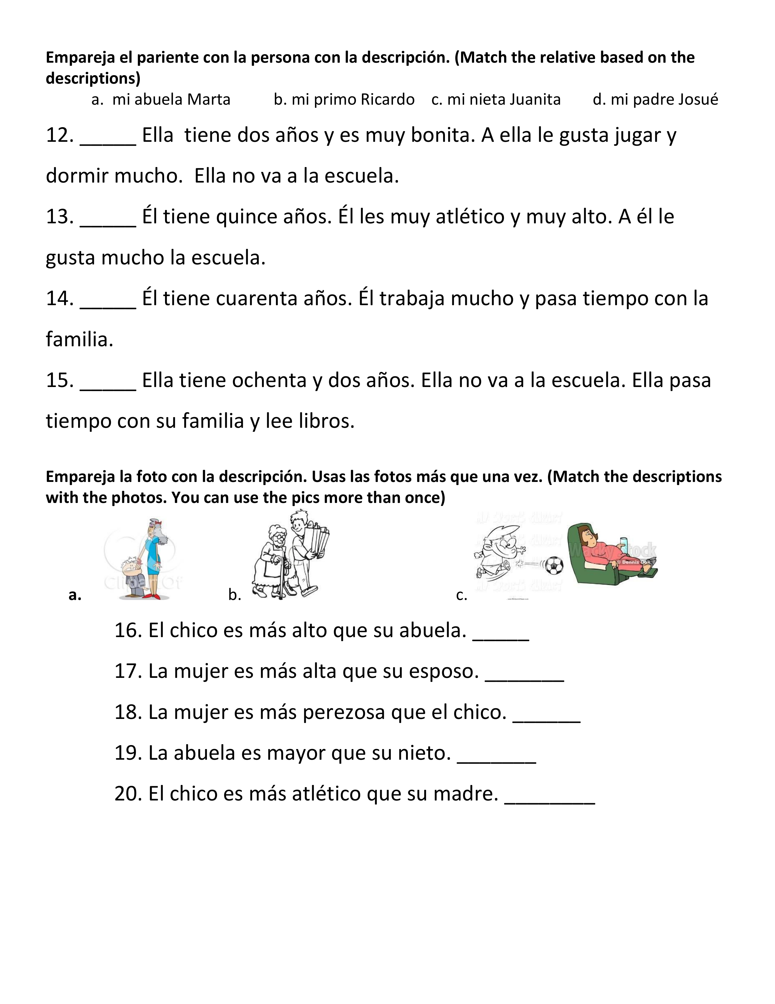 Choose the relative that each statement could be describing. You'll use each person only once. Assume you are your actual age.