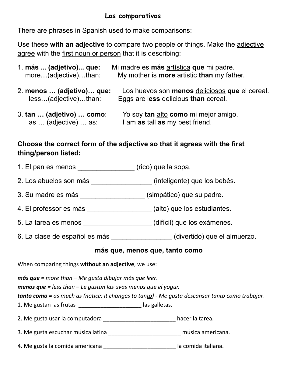 tan + adjective + como = as…..as ex: Tus hermanas son tan serias como el profesor.