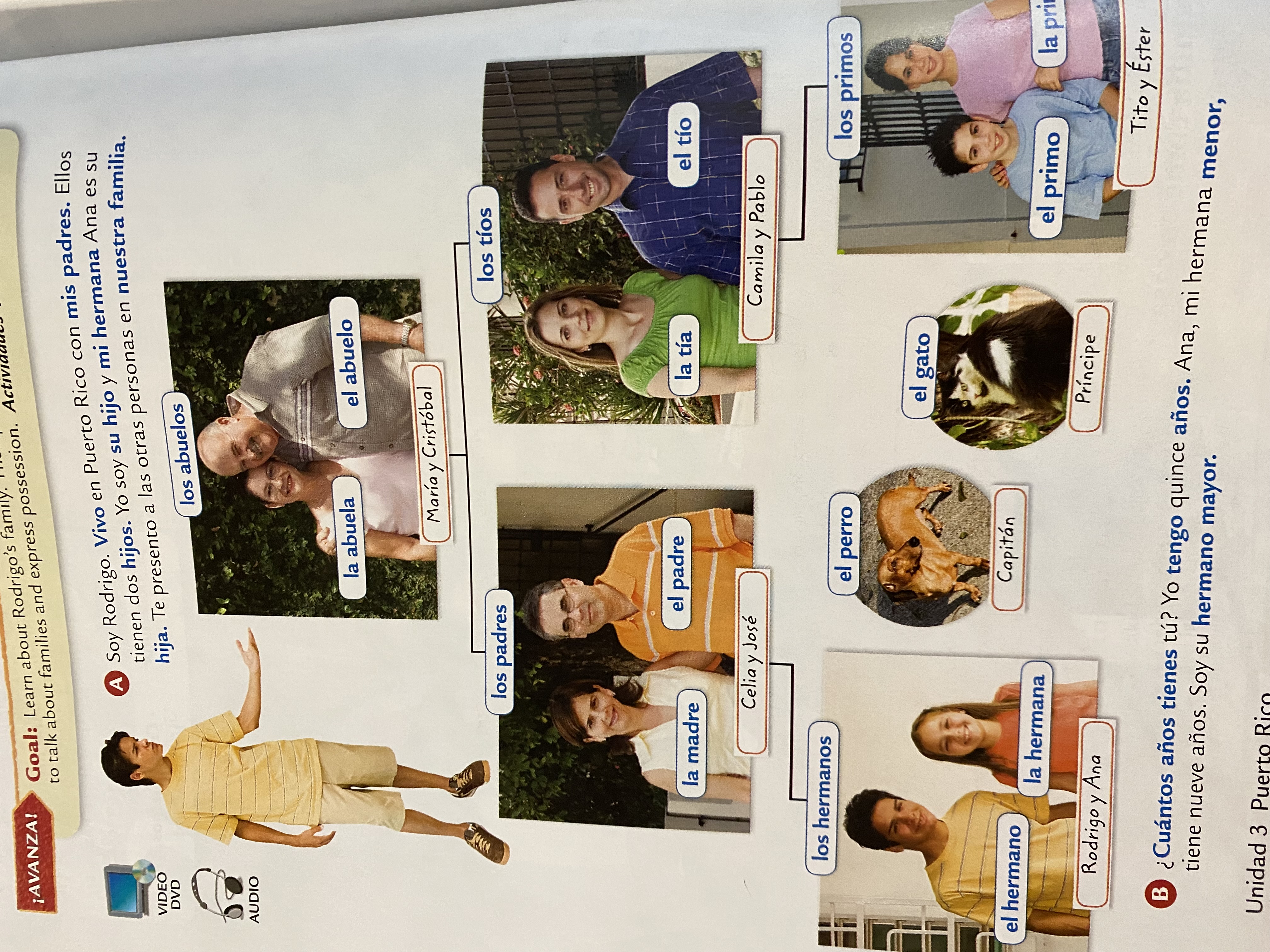 Use Rodrigo's family tree in the first photo to say how old his relatives are in Activity 4 on the second page. The key will grade pretty accurately, but I will double check answers before returning this after class.