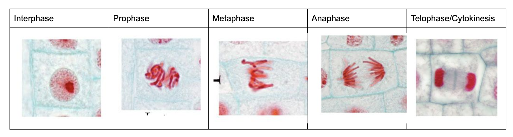 Using a Google Sheet make a pie graph to illustrate what percentage of the 100 cells that you counted for the first question are in each phase. Be sure to include all necessary elements (like a very specific title, key, etc.). Take a screenshot of your graph and paste it here. Be sure to crop the picture so that you only see the graph/title/etc. and not your background or the rest of the Google Sheet.