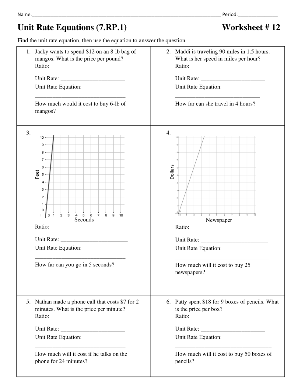 7LRIS Honors WS#12 - Blue Unit Rate Equations