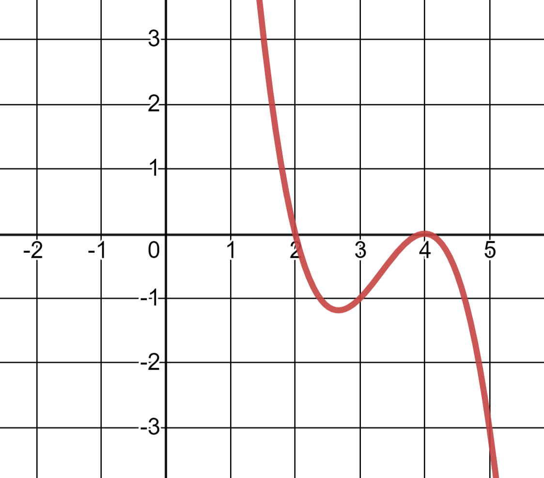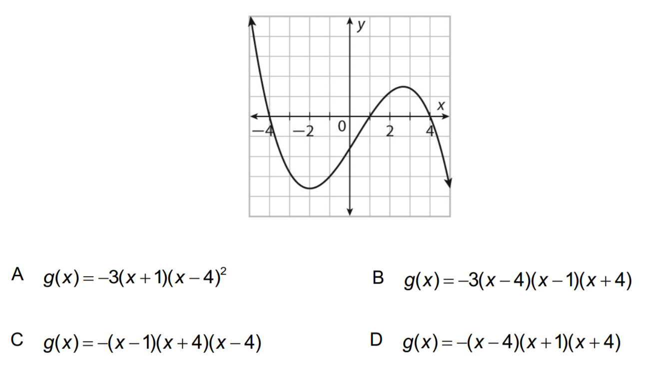 for the graph below. Assume the leading coefficient 'a' is either 1 or -1.